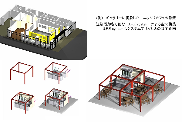 アート空間をエントランス空間の中心に据えて、そのまわりに各種サービス空間を配置することは、顕在するアートと空間、アートのもつ「知」「感性」といった潜在性により、企業ウェルフェアを品格のあるものとして形成していくのではないでしょうか。 また企業のウェルフェアとの捉え方だけでなく、積極的に外来者を集客すればビジネス的展開も広がるのではないでしょうか。