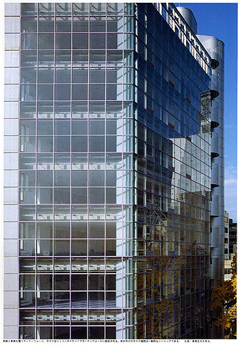 今でこそ透明ガラスの建築物は街中に多くみうけますが、 当時はスパッタリングガラス(超高性能熱反射ガラス 昔はやったミラーサングラスみたいなやつ) の全盛期でした。 ファスナリングまでをすべて見せている透明ガラス建築は珍しかったと思います。